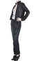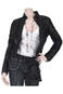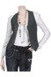 Lesklá, módní vesta a velmi ozdobná horní část kalhot ve spojení s bílou jednoduchou halenkou a subtilními botami.